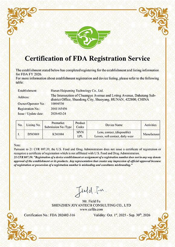Established in 2009, Realcon specialize in the R&D, production and sales of soft contact lenses. Their rigorous quality control system ensures full compliance with international standards, with certifications meeting GMP, ISO and CE requirements.