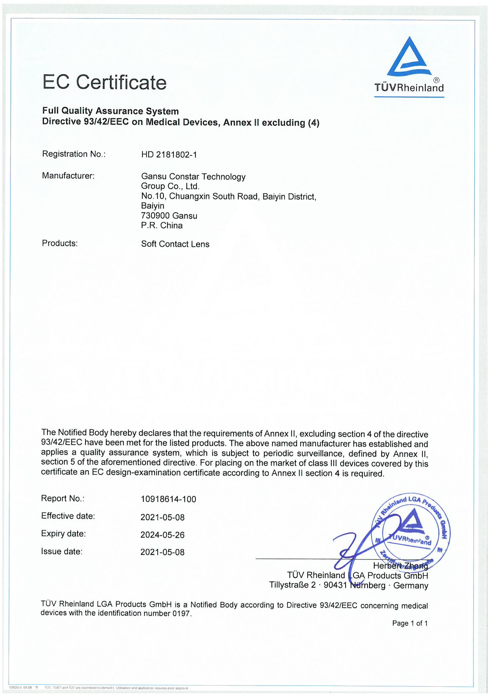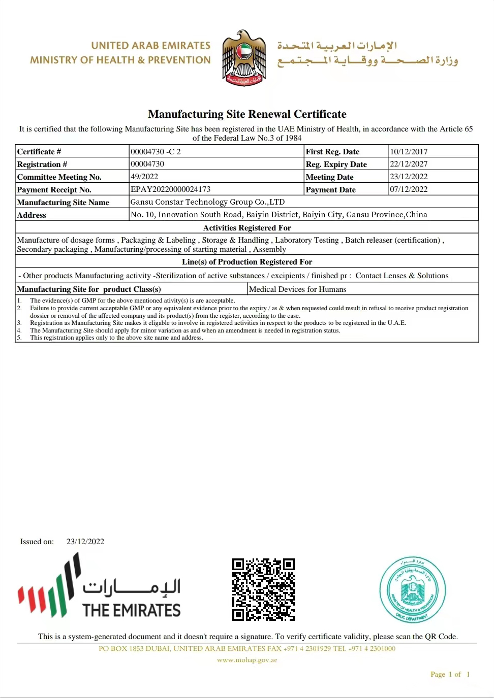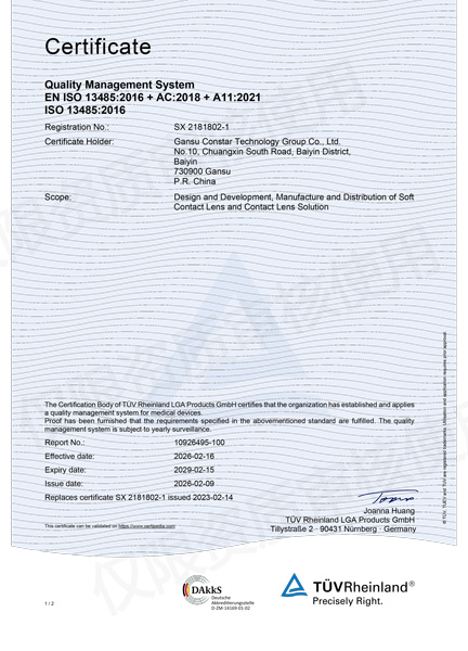Gansu Constar Group, headquartered in the Baiyin National High-Tech Industrial Development Zone, operates 6 modern contact lens manufacturing facilities with a monthly capacity exceeding 10 million lenses.